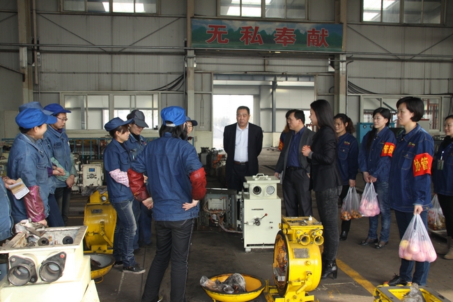 上午10:00,工会主席王林安带领女工委协管员一行7人,抬着苹果、香蕉、橘子等慰问品,先后到机修厂、动筛车间、锅炉房、副主井绞车房、翻矸机房等岗位机台进行慰问,为那里的女同胞们送去了矿党政的关怀与节日的祝福,并嘱咐她们在上标准岗、干标准活的同时,要认清形势,解放思想,转变工作作风,为矿发展贡献自己的力量。女职工们对矿上的慰问非常高兴,机修厂女职工曹亚萍激动地说:“感谢领导给我们送来的礼品和节日的祝福,我们会更加努力地工作回报企业”。