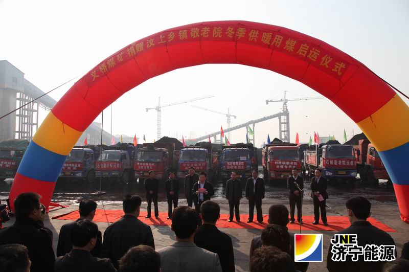 一辆辆满载的煤车缓缓启动,载着义桥煤矿全体干部职工的祝福驶向各乡镇敬老院。