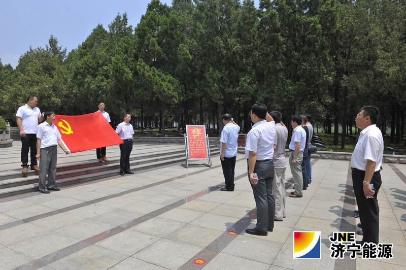 在革命根据地,大家先后参观了孟良崮战役纪念馆,通过观看历史文物,了解革命史。在孟良崮纪念碑前,向革命烈士敬献花篮,面对鲜红的党旗,全体党员在党委书记柴同义的带领下,一起庄严重温入党誓词。