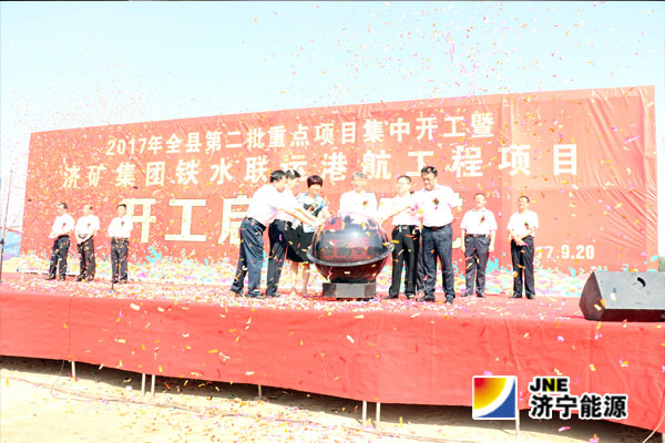 9月20日,济矿铁水联运项目二期港航工程施工现场,人潮涌动,礼炮轰鸣,梁山县第二批重点项目集中开工暨济矿集团铁水联运港航工程项目开工启动仪式在这里隆重举行。
